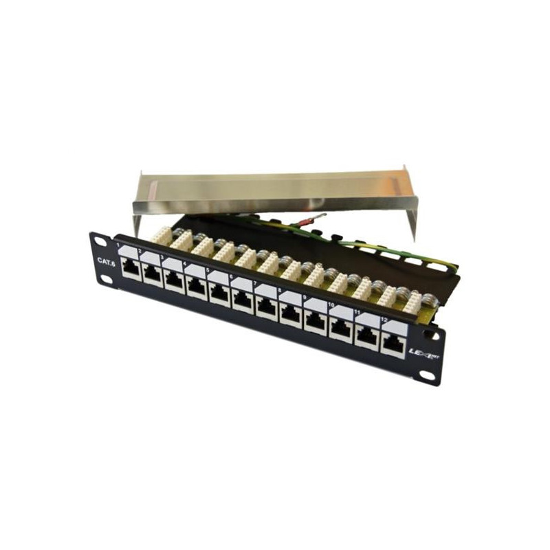 10" patch panel 12port Cat6, FTP, blok UNI-110, vyväz. lišta, 1U čierny 4064