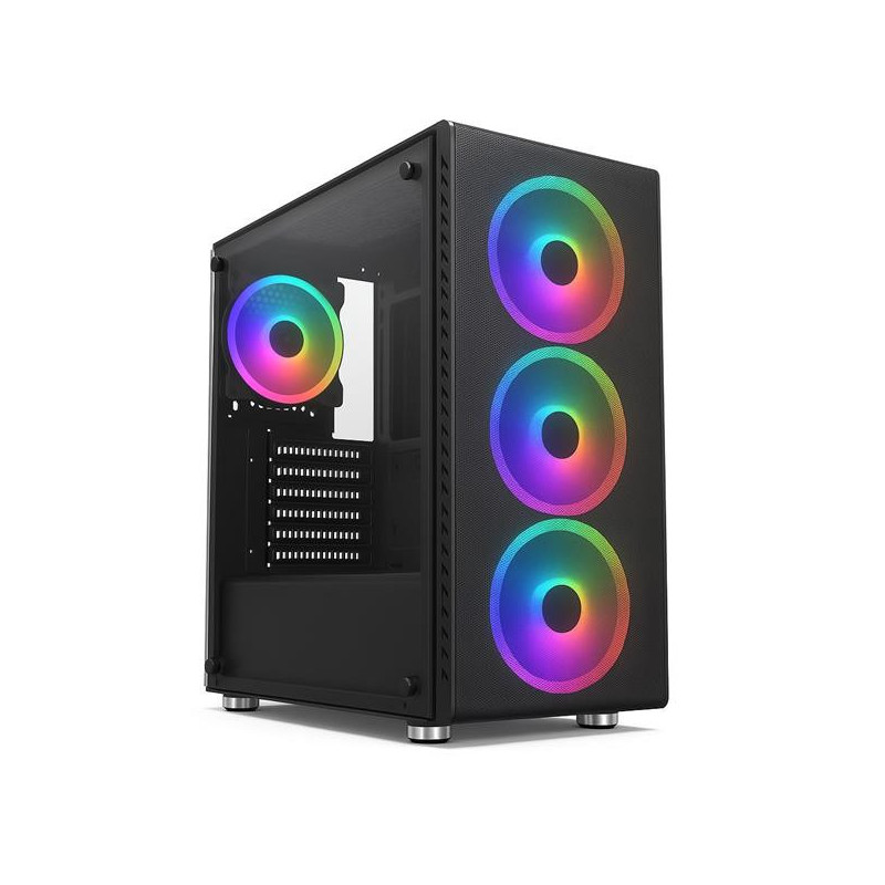 Inovovaná RAINBOW EVO séria je už v základnom prevedení vybavená statickými RGB ventilátormi, konkrétne Rainbow 4 je osadený štyrikrát 120mm sRGB ventilátorom z toho tri na čelnom paneli a jeden na zadnom paneli.