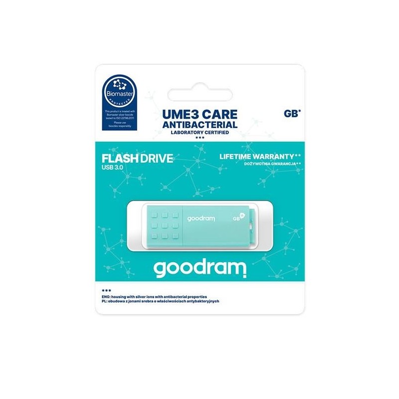 GOODDRIVE UME3 CARE bola vytvorená pre tých, pre ktorých je dôležitá bezpečnosť a hygiena, najmä v kancelárskych priestoroch. Vďaka technológii Biomaster obsahuje kryt produktu ióny striebra s baktericídnymi vlastnosťami. V dôsledku toho je výrobok úplne chránený pred baktériami počas celej doby používania.