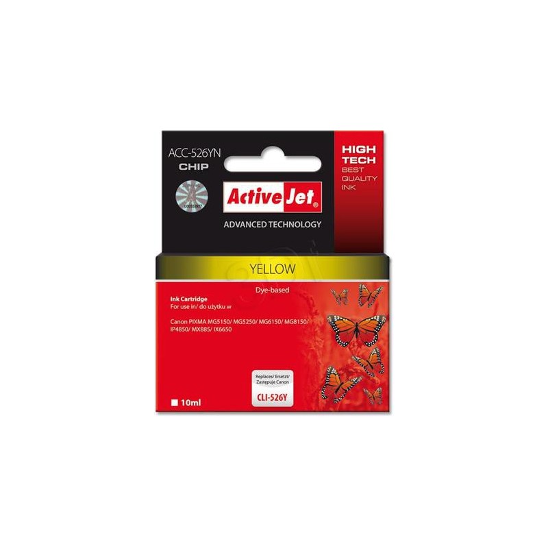 ActiveJet ink cartr. Canon CLI-526Y - 10 ml - 100% NEW (WITH CHIP) ACC-526Y EXPACJACA0108