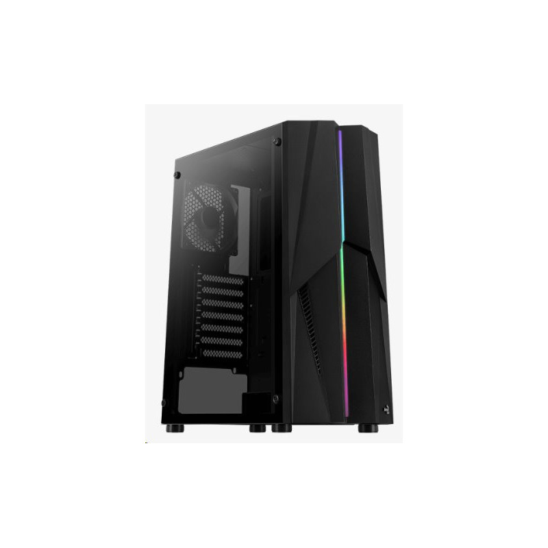 Vysokovýkonné šasi typu mid tower s výrazným dizajnom predného panela RGB, ktorý poskytuje výkonný a dynamický vzhľad a dojem.