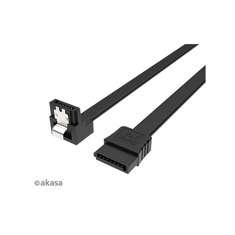 Super slim SATA 3 right angle cable with latch, perfect for tight fitting systems. Data transfer rate of up to 6Gbps backwards compatible with previous SATA generations. Coupled with latch for a stable and secure connection.