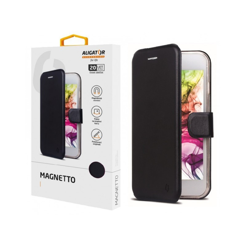 Dokonale propracovaný design, ultratenké provedení, přihrádka na kartu nebo vizitky, zavírání pomocí magnetické přezky, snadné uchycení mobilního telefonu pomocí silikonové vaničky, stojánek… To je ALIGATOR MAGNETTO.