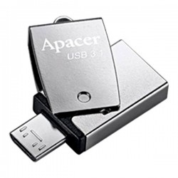 Apacer USB flash disk OTG, USB A/micro USB, strieborný, s otočnou krytkou, AH750