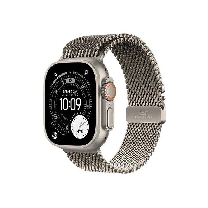 Apple Watch Ultra 3 GPS + Cellular 49mm Natural Titanium Case with Natural Titanium Milanese Loop - Small MEWW4QC/A