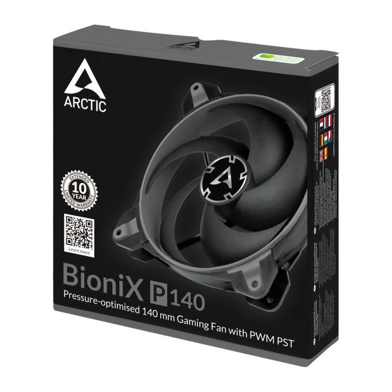 Kvalitný tichý ventilátor s Fluid Dynamic Bearing ložisku. Priemer 140 mm. Otáčky: 200 ? 1950 Rpm, prietok 77,6 CFM tj. 131,92 m3 / h pri 1950 otáčkach za minútu, hlučnosť 0,45 Sone, prúd / Napätie: 0,15 A / 12 V DC, dĺžka kábla: 400 mm, dĺžka kábla Sub PST: 50 mm, 4-kolíková zásuvka, statický tlak: 2,85 mm H2O pri 1950 Rpm