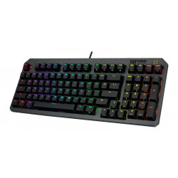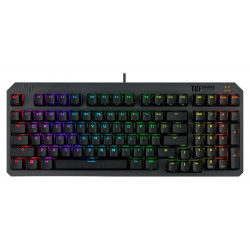 Klávesnica ASUS TUF Gaming K3 Gen II s kompaktným rozložením 97 kláves, opticko-mechanickými RGB prepínačmi, silikónovým tesnením, tlmiacou penou, vodotesnosťou IP57, odnímateľnou vrchnou doskou a kompatibilitou Aura Sync.