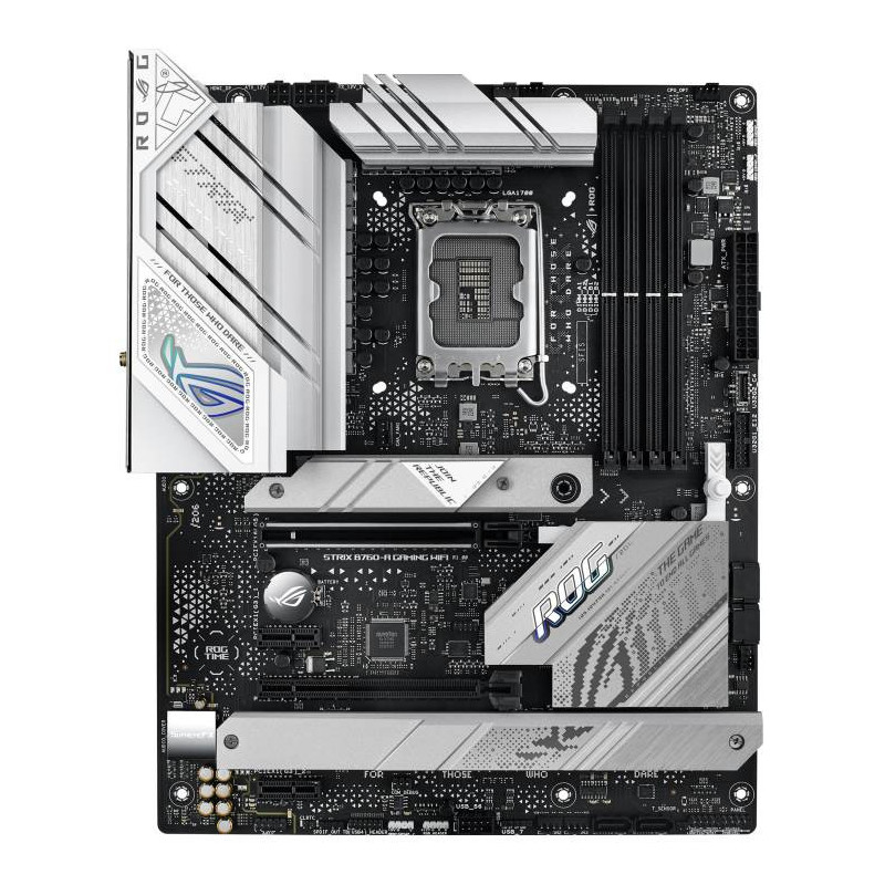Just like its formidable sibling, the ROG Strix B760-A Gaming WiFi dishes up a vibrant take on the latest Intel platform, with PCIE 5.0, USB 3.2 GEN 2x2, and cyber-inspired ROG motifs emblazoned on a high-contrast backdrop. But this variant features DDR5, bringing even more bandwidth to the table for games and apps.