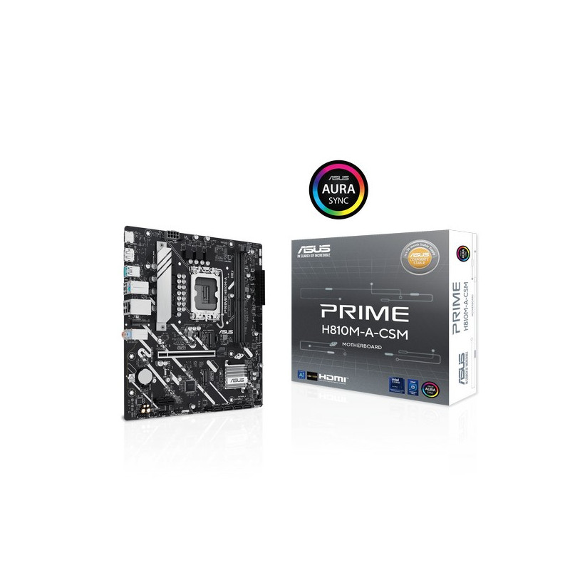 Základná doska PRIME H810M-A-CSM, ktorá sa môže pochváliť robustnou konštrukciou napájania, komplexnými riešeniami chladenia a inteligentnými možnosťami ladenia, poskytuje používateľom a tvorcom osobných počítačov rad optimalizácií výkonu prostredníctvom intuitívnych funkcií softvéru a firmvéru. Je navrhnutý tak, aby bol pripravený na počítač s pokročilou AI a ponúkal výkon a konektivitu potrebnú pre náročné aplikácie AI.