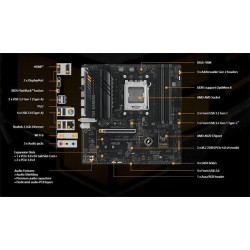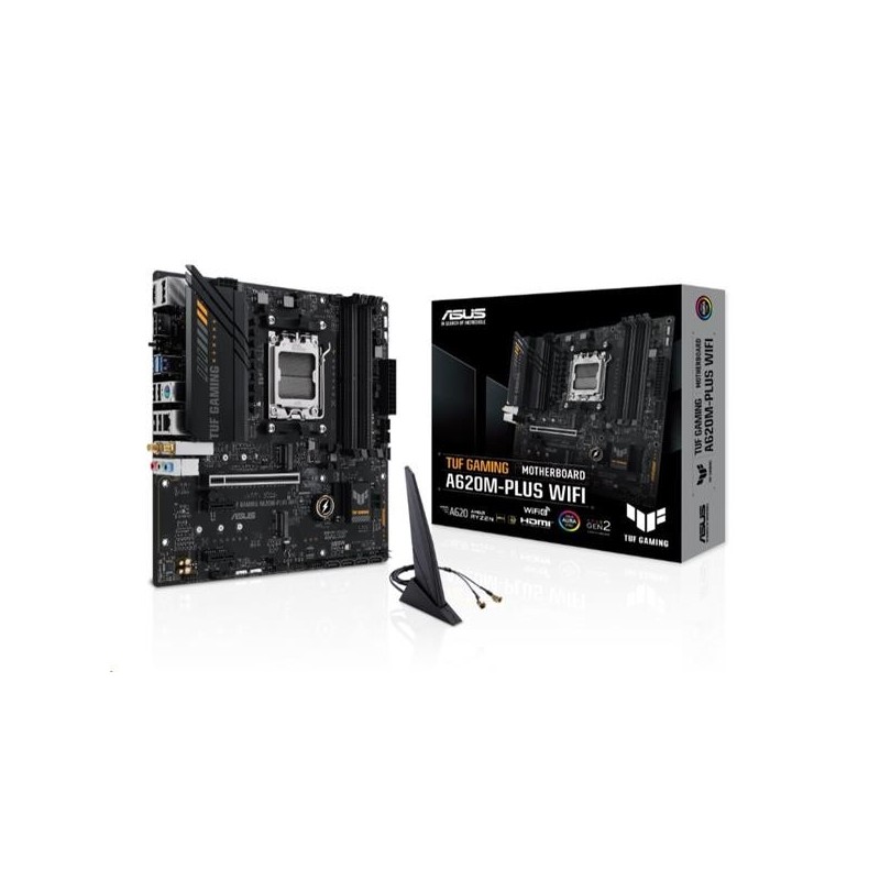 ASUS TUF GAMING A620M-PLUS WIFI preberá všetky základné prvky procesorov AMD Ryzen série 7000 a kombinuje ich s funkciami pripravenými na hru a overenou odolnosťou.