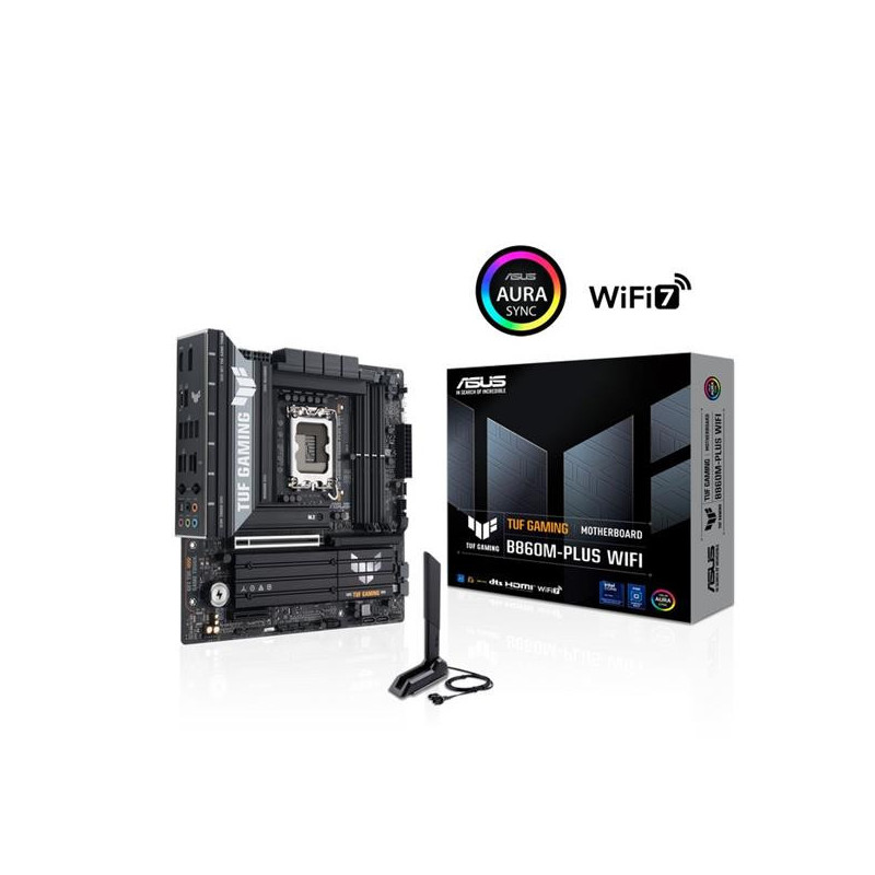 ASUS TUF GAMING B860M-PLUS WIFI využíva všetky základné prvky najnovších procesorov Intel® Core™ Ultra (séria 2) a kombinuje ich s funkciami pripravenými na hry a overenou odolnosťou.