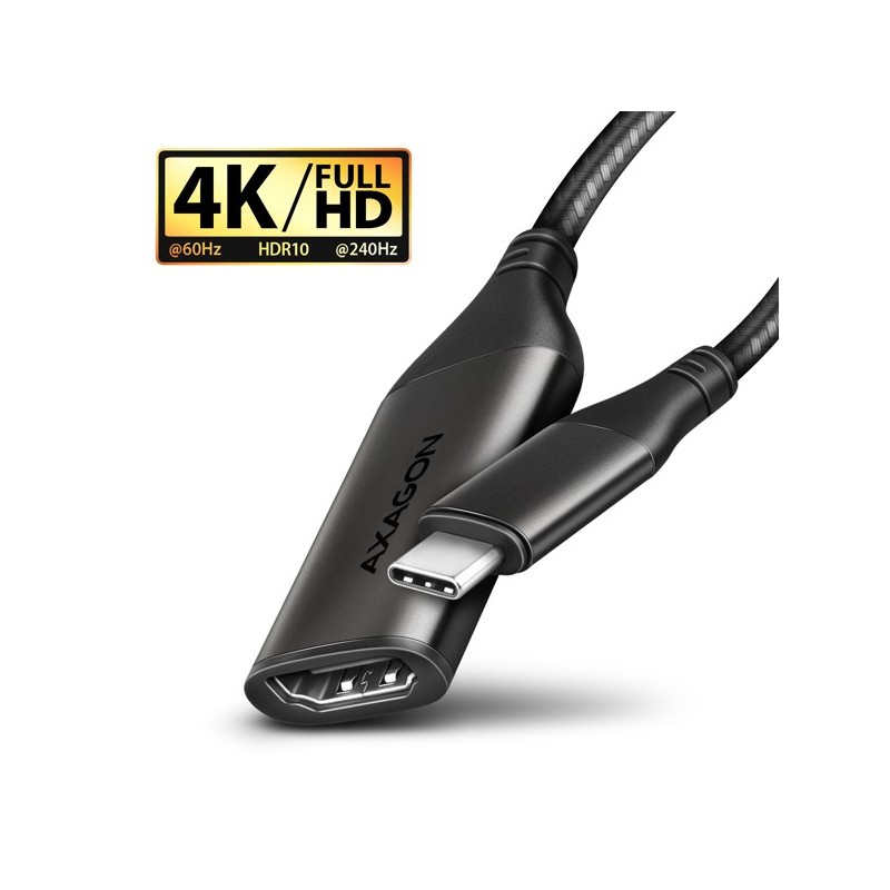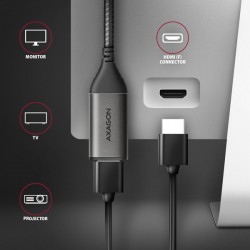 Moderní USB-C -> HDMI aktivní redukce AXAGON RVC-HI2M pro připojení HDMI monitoru/TV/projektoru k notebooku nebo telefonu pomocí USB-C konektoru.