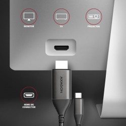 Moderní USB-C -> HDMI aktivní kabelová redukce AXAGON RVC-HI2MC pro připojení HDMI monitoru/TV/projektoru k notebooku nebo telefonu pomocí USB-C konektoru.