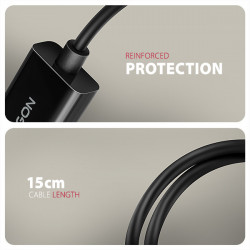 Zníženie je vyrobené z kvalitných materiálov, ktoré zabezpečujú vysokú spoľahlivosť. Kábel aj konektory sú chránené proti ohýbaniu, čím sa predlžuje ich životnosť. Adaptér navyše disponuje 15 cm flexibilným káblom pre jednoduchšiu manipuláciu.