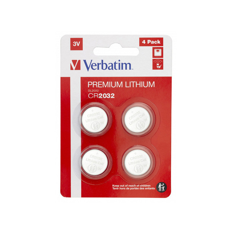 Batéria líthiová, gombíková, CR2032, 3V, Verbatim, blister, 4-pack, 49533