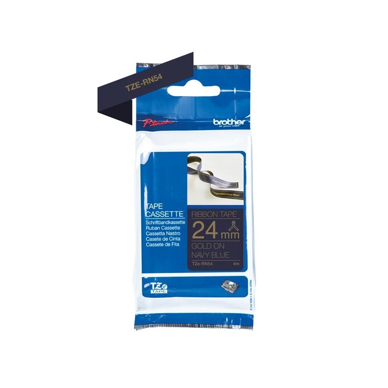 Brother originál páska do tlač. štítkov, Brother, TZE-RN54, zlatý tlač/tmavo modrý podklad, textilná, 4m, 24mm TZERN54
