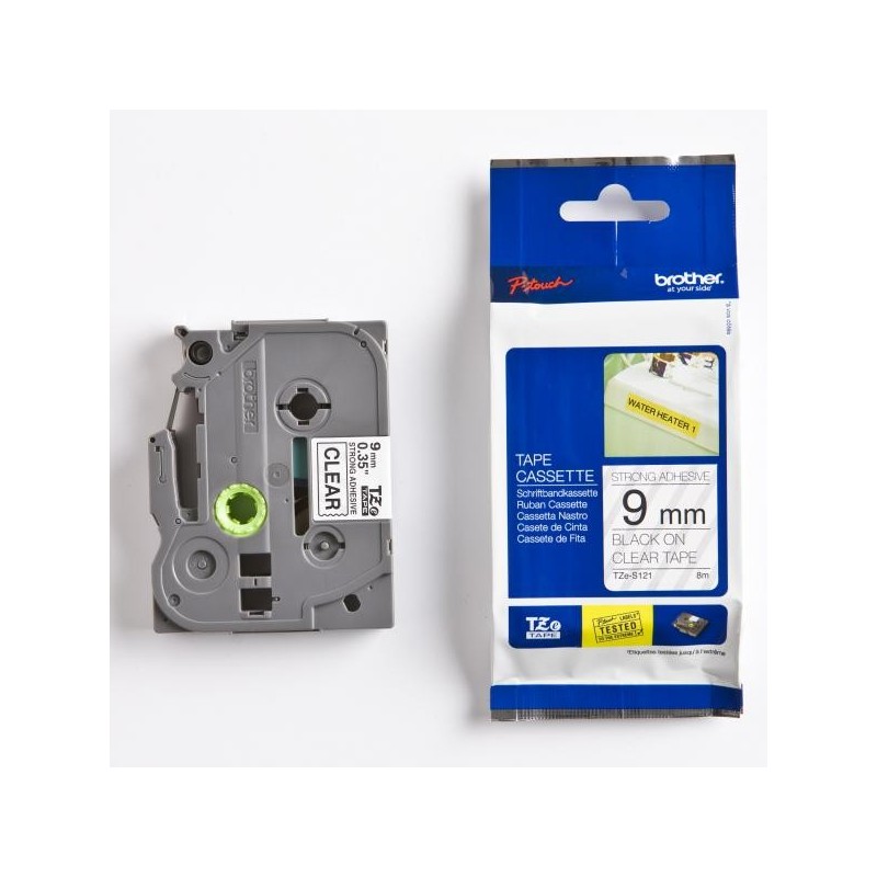 Brother originál páska do tlač. štítkov, Brother, TZE-S121, čierny tlač/priesvitný podklad, laminovaná, 8m, 9mm