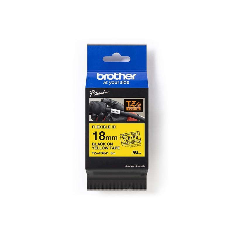 Brother originál páska do tlač. štítkov TZE-FX641, čierny tlač/žltý podklad, laminovaná, 8m, 18mm, flexibilná
