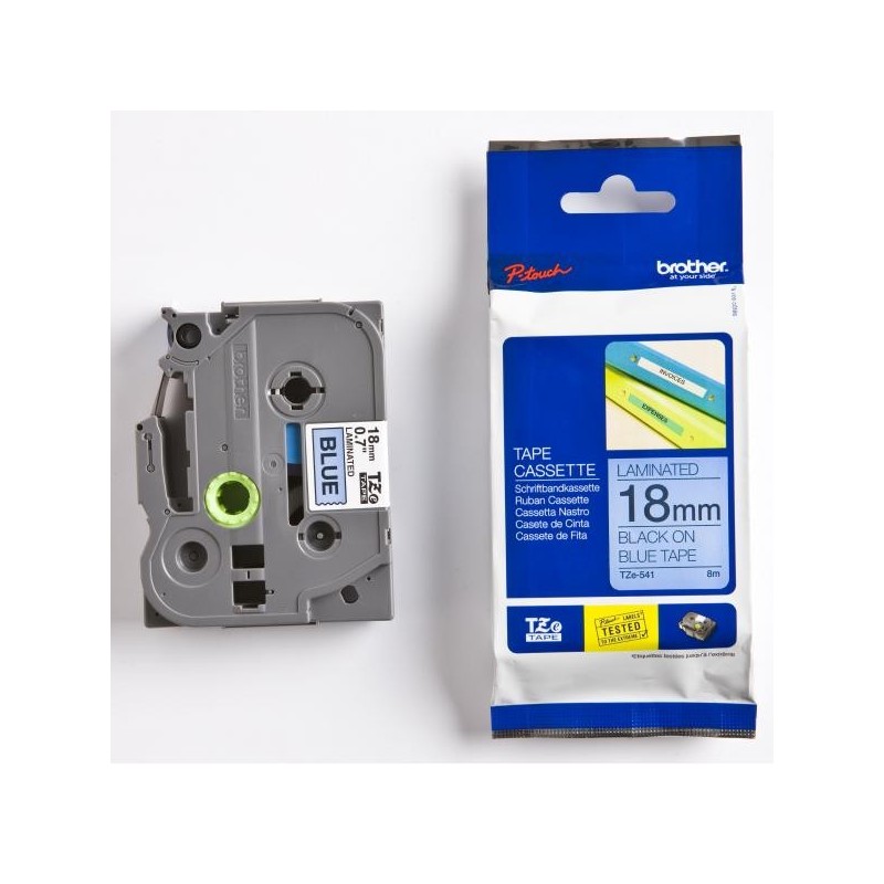 Brother originál páska do tlačiarne štítkov, Brother, TZE-541, čierny tlač/modrý podklad, laminovaná, 8m, 18mm TZE541