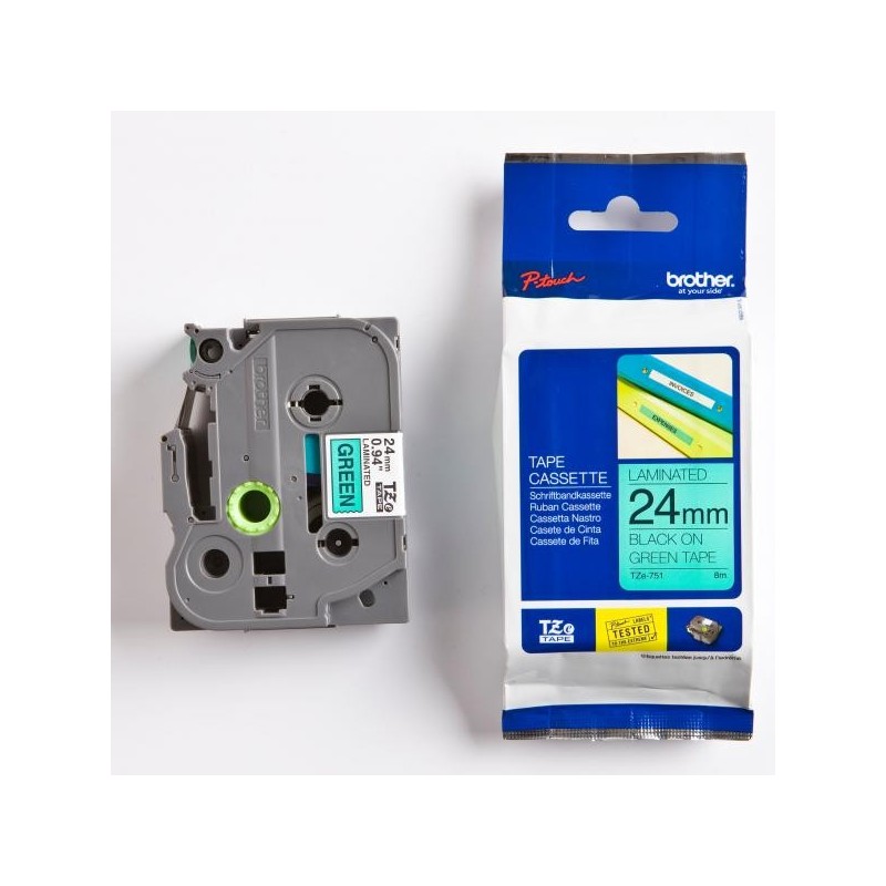 Brother originál páska do tlačiarne štítkov, Brother, TZE-751, čierny tlač/zelený podklad, laminovaná, 8m, 24mm TZE751