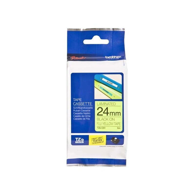 Brother originál páska do tlačiarne štítkov, Brother, TZE-C51, žltý tlač/čierny podklad, laminovaná, 5m, 5mm TZEC51