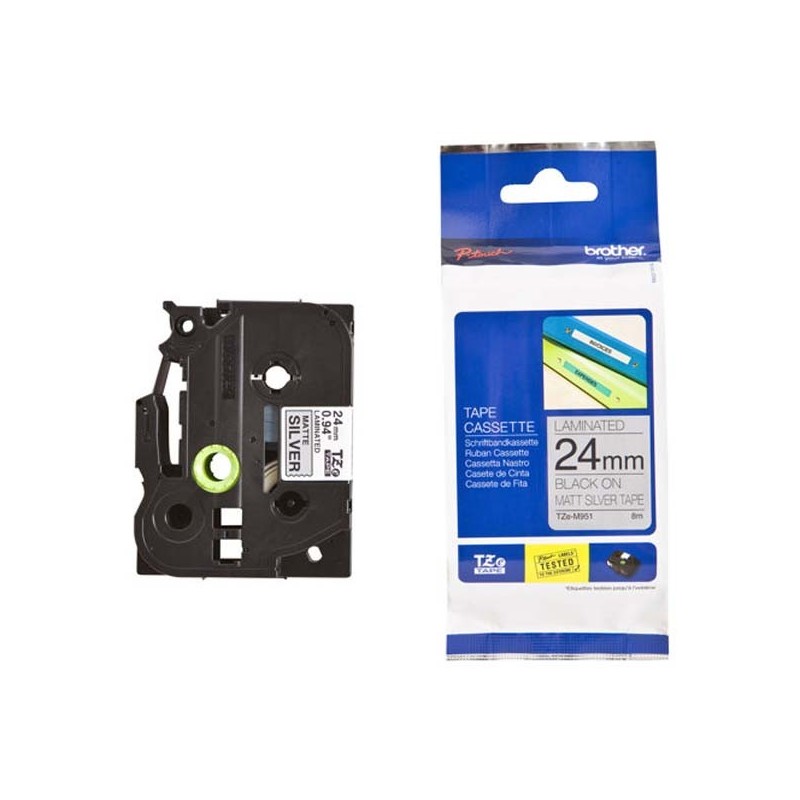 Brother originál páska do tlačiarne štítkov, Brother, TZE-M951, čierny tlač/strieborný podklad, laminovaná, 8m, 24mm