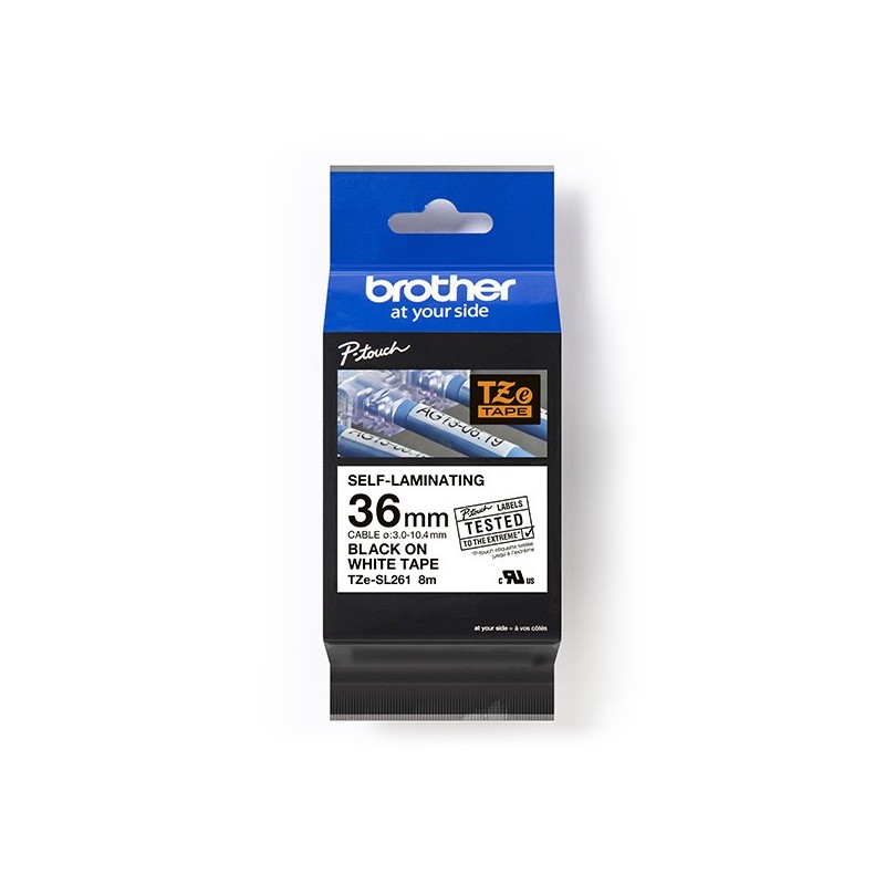 Brother originál páska do tlačiarne štítkov, Brother, TZE-SL261, čierny tlač/biely podklad, lamin., 8m, 36mm TZESL261