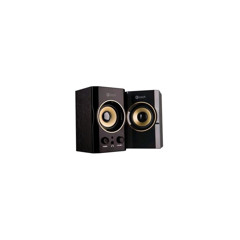 C-TECH reproduktory SPK-11, 2.0, dřevěné, černo-zlaté, USB, 5W