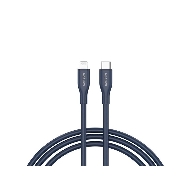 Canyon CLNM60SC10, 1 m kábel, USB-C / Lighting, MFi Aple schválený, 60W, 480 Mbps, silikónový, šedý