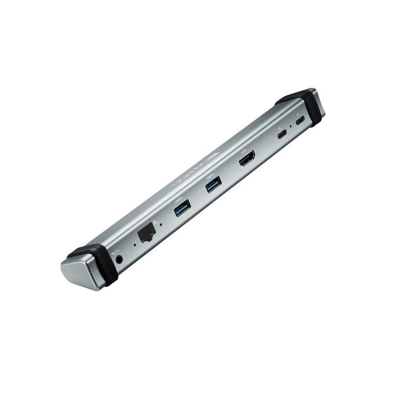 Multifunkčný Hub s výstupom USB-C pre široké spektrum notebookov. Vďaka tomu, že disponuje všetkými portami a slotmi, ktoré bežný užívateľ potrebuje pre každodennú prácu, je skutočne univerzálny. Poskytuje vysokokvalitné 4K HDMI prepojenie s monitorom, stabilný 1.000 Mbit ethernet, rýchly prenos vďaka dvom USB 3.0 portom, duálny audio kanál pre mikrofón aj slúchadlá, a dva rozširujúce porty USB-C pre nabíjanie a pripojenie ostatných zariadení. Stabilita všetkých pripojení je garantovaná integrovaným vysoko kvalitným PVC káblom. Odolný alumíniový kryt chráni hub pred vonkajším poškodením. Zariadenie môžete dokonca používať aj ako dokovaciu stanicu, alebo stojan, ak Váš notebook položíte na jeho horný okraj.
