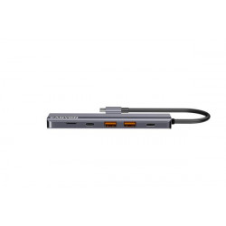 Zažite bezkonkurenčnú konektivitu a produktivitu s naším ultimátnym USB Hubom, ktorý je navrhnutý tak, aby spĺňal požiadavky moderných profesionálov a technologických nadšencov. Tento kompaktný rozbočovač je vybavený vstupným portom Typ-C a šiestimi všestrannými výstupmi, ktoré zaisťujú bezproblémové pripojenie všetkých vašich zariadení a periférnych zariadení. Enjoy stunning visuals with the HDMI port that supports 4K Ultra HD at 60 Hz. Prenášajte dáta bleskovou rýchlosťou vďaka dvom portom USB-A 3.2, z ktorých každý ponúka 10 Gb/s. Port USB-C navyše poskytuje 10 Gb/s pre moderné zariadenia. Jednoduchý prístup k súborom pomocou vstavanej čítačky kariet microSD. Udržujte svoje zariadenia napájané vďaka možnosti nabíjania PD 100 W. Či už pracujete z domu, v kancelárii alebo na cestách, tento rozbočovač USB je vaším all-in-one zariadením na pripojenie.