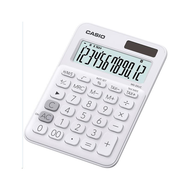 Stolný kalkulačka v módnych trendových farbách Veľký 12-miestny displej Výpočet DPH Výpočet percent Výpočet odmocniny Tlačidlo +/- Tlačidlo pre opravu zadania Tlačidlo dvojité nuly Výpočty s časom Napájanie: duálne solárno-batériové Rozmery: 23x105x149,5 mm Hmotnosť: 110g