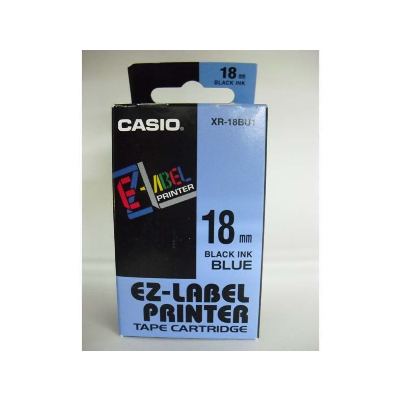 Casio originál páska do tlačiarne štítkov, Casio, XR-18BU1, čierny tlač/modrý podklad, nelaminovaná, 8m, 18mm