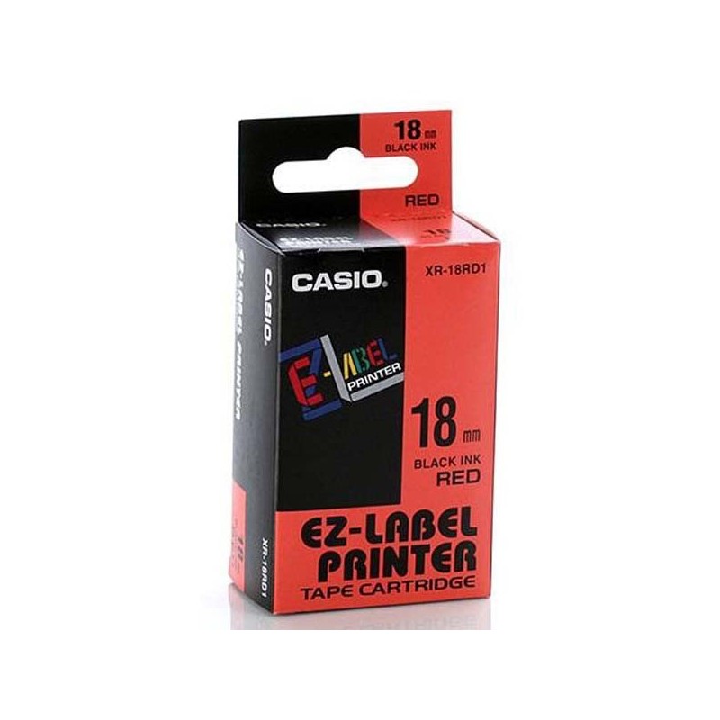 Casio originál páska do tlačiarne štítkov, Casio, XR-18RD1, čierny tlač/červený podklad, nelaminovaná, 8m, 18mm