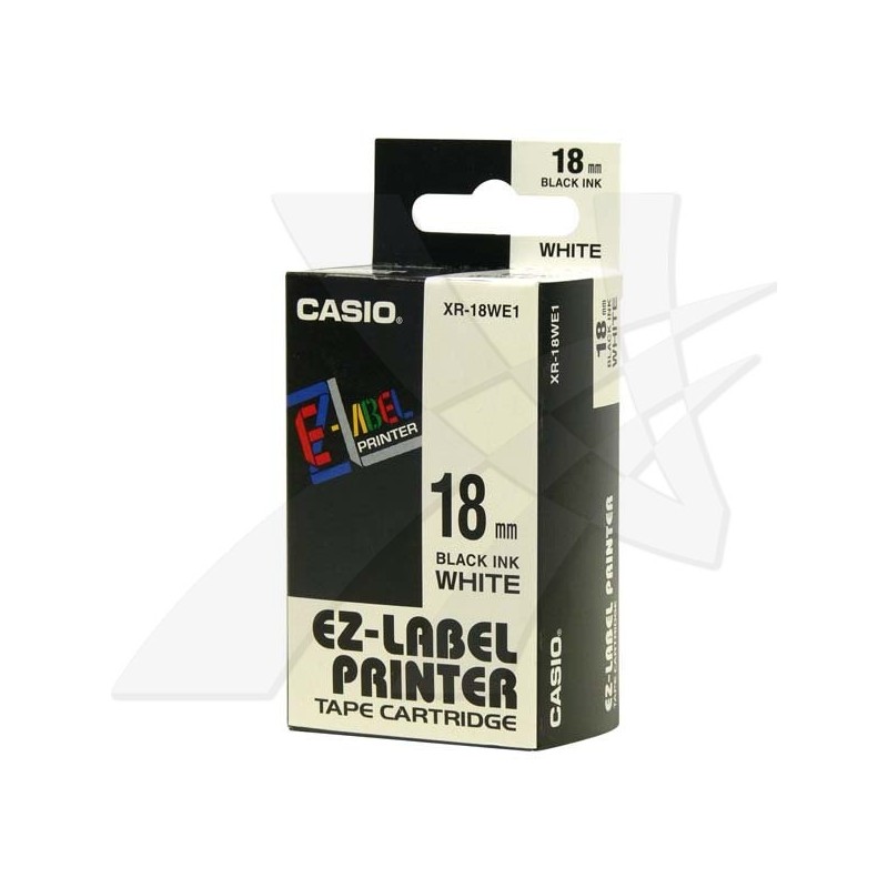 Casio originál páska do tlačiarne štítkov, Casio, XR-18WE1, čierny tlač/biely podklad, nelaminovaná, 8m, 18mm