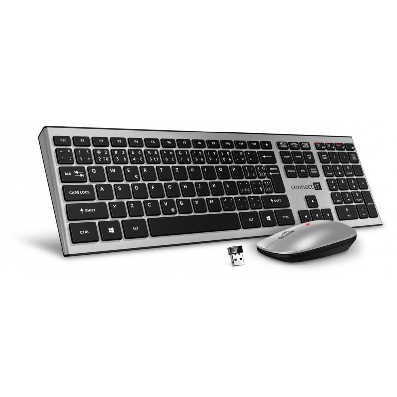 CONNECT IT Combo bezdrátová stříbrná klávesnice + myš, (+2x AAA +1x AA baterie zdarma), CZ + SK layout