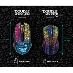 Profesionálna bezdrôtová herná myš DOODLE 2 PRO je navrhnutá pre hráčov počítačových hier, ktorí vyžadujú presnosť, rýchlosť a spoľahlivosť. Jej telo aj koliesko sú vybavené efektným podsvietením Rainbow (RNBW), ktoré dotvára hernú atmosféru.