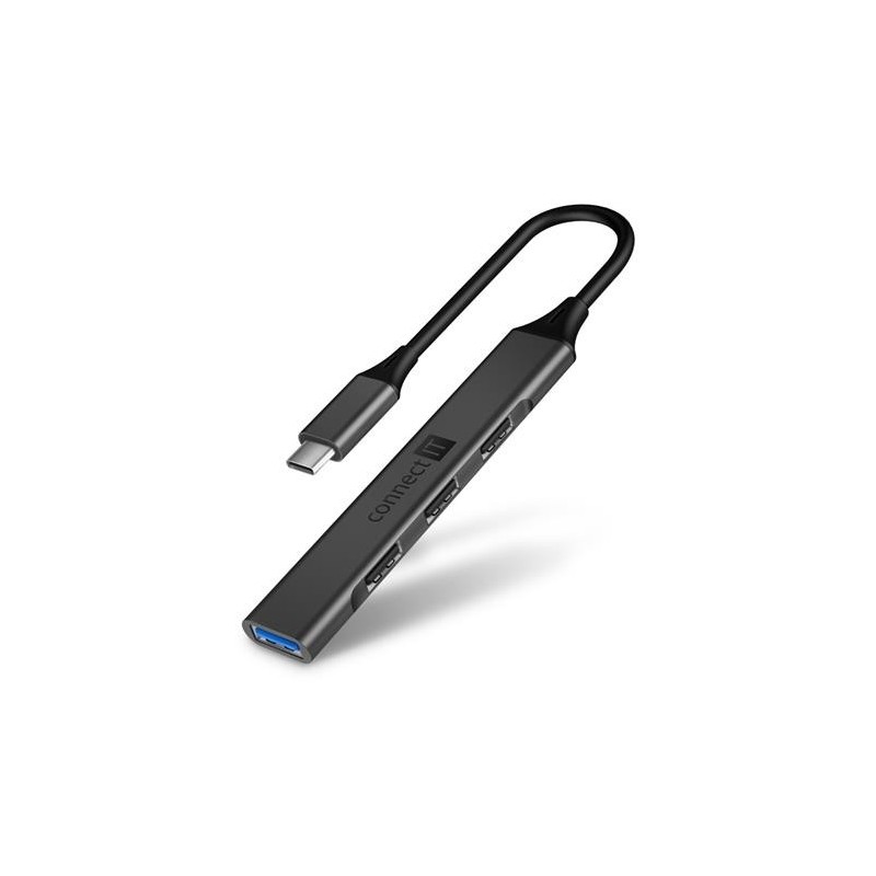 CONNECT IT USB-C hub, (1xUSB-A 3.0, 3xUSB-A 2.0), externí, ANTRACITOVÝ