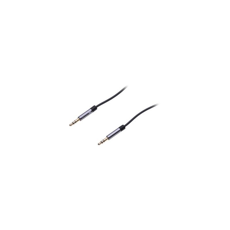 Vysoko kvalitne spracovaný prepojovací audio kábel s 3,5 mm stereo Jack konektormi na oboch stranách. Vhodné k pripojeniu akýchkoľvek zariadení, ktoré majú 3,5 mm Jack výstup. Prevedenie: 2x samec Jack 3,5 mm s pozlátenými konektormi. Dĺžka: 1,8m. Farba: čierna