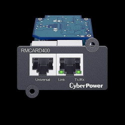 CyberPower RMCARD400 je voliteľným doplnkom pre správu konkrétnej UPS rady CyberPower. Vložením karty do sieťového slotu SNMP / HTTP na UPS môžu používatelia vzdialene monitorovať a riadiť zariadenie v kancelárii, serverovni alebo dátovom centre prostredníctvom štandardných webových prehliadačov, systému správy siete (NMS) alebo rozhrania príkazového riadka (SSH a Telnet) v ich sieti. Môžu tiež vykonávať vzdialenú správu vrátane naplánovaného vypnutia, zapnutia a reštartu. Keď dôjde k problémom s napájaním, správca bude okamžite informovaný prostredníctvom e-mailu, SNMP a SMS správ. Použitím softvéru na automatické vypínanie zostávajú servery a pracovné stanice chránené pred stratou dát v dôsledku výpadku napájania. Záznam udalostí sleduje prevádzkovú históriu UPS. Vďaka možnosti výmeny batérií za prevádzky môže systém zostať zapnutý, aj keď servisný personál vykonáva údržbu alebo výmenu na mieste. Pomocou viacjazyčného rozhrania môžu používatelia zvoliť svoj preferovaný jazyk pre jednoduchú správu.