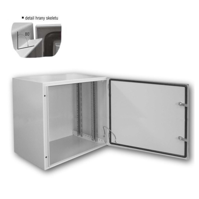 Univerzální svařovaný nástěnný rozvaděč pro prvky strukturovaných kabeláží menšího rozsahu, nebo pro instalaci prvků telekomunikačních rozvodů se širokým spektrem použití.