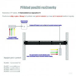 - adaptér pro sdružení 4 telefonních linek (2 žíly) do jednoho 4 párového kabelu
