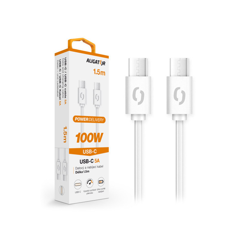 ALIGATOR POWER špičkový USB-C/USB-C kabel nejvyšší kvality, o výkonu 100W a možností nabíjení až 5A.