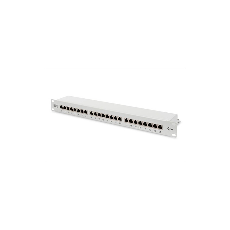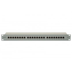 CAT 5e, Class D patch panel, shielded, 24-port RJ45, 8P8C, LSA, 1U, rack mount, grey, 482x44x109