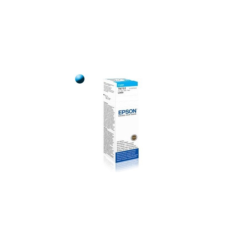 Originálny cartridge pre tlačiarne Epson. Modely: Epson L800, L1800, L805, L810, L850, Farba: Azúrová (Cyan), 70ml, vyťaženosť: 4000 strán