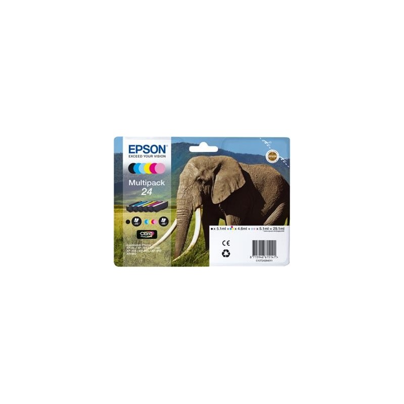 Consumables: Ink Cartridges, Claria™ Photo HD Ink, 24, Elephant, Multipack, 1 x 5.1 ml Black, 1 x 5.1 ml Light Cyan, 1 x 4.6 ml Magenta, 1 x 4.6 ml Cyan, 1 x 4.6 ml Yellow, 1 x 5.1 ml Light Magenta