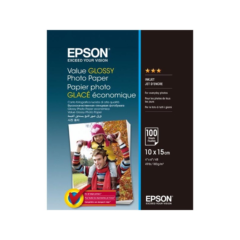 Epson Value Glossy Photo Paper, foto papier, lesklý, biely, 10x15cm, 183 g/m2, 100 ks, C13S400039, atramentový