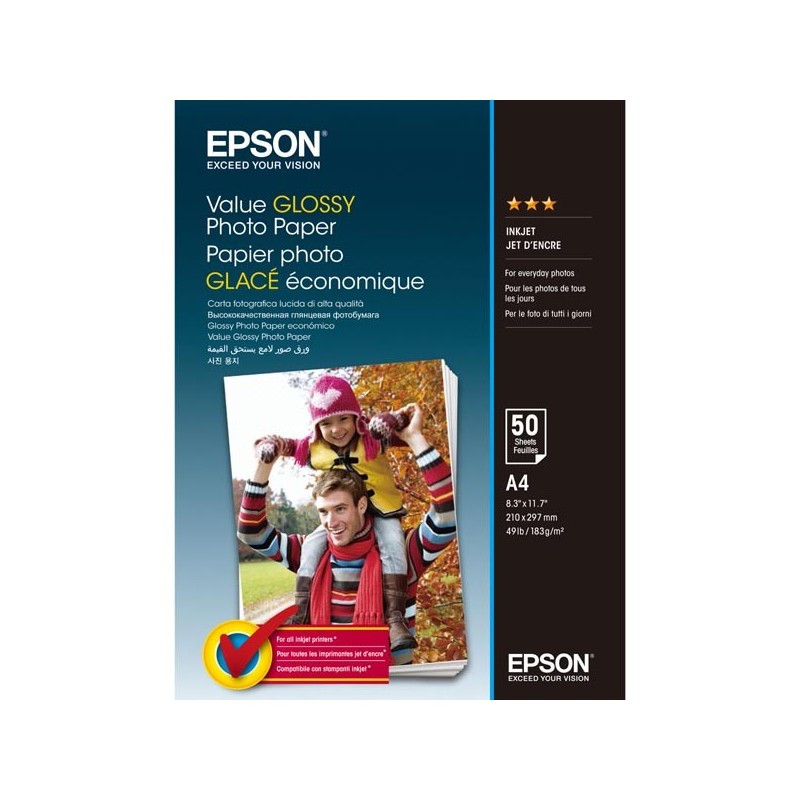 Domáca tlač lesklých fotografií bude vďaka papieru Value Glossy Photo Paper od spoločnosti Epson ľahký a cenovo dostupný. Tento všestranný papier ponúka radu možností a dá sa použiť s akoukoľvek atramentovou tlačiarňou so zadným podávaním. Je k dispozícii v rôznych formátoch a baleniach.