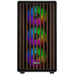 EVOLVEO Panthera, skříň mATX, 6x ARGB ventilátor 120mm, dřevěný přední panel + skleněná bočnice