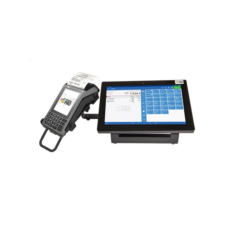 Pokladničné riešenie s Android aplikáciou FiskalPRO Mobile vhodné pre pevné prevádzky, predaj tovaru a služieb. Uchytenie tabletu a platobného terminálu s fiskálnou tlačiarňou v kompaktnom, masívnom a stabilnom BASIC stojane. Možnosť pripojenia externých zariadení/periférií (skener čiarových kódov, peňažná zásuvka, váha).